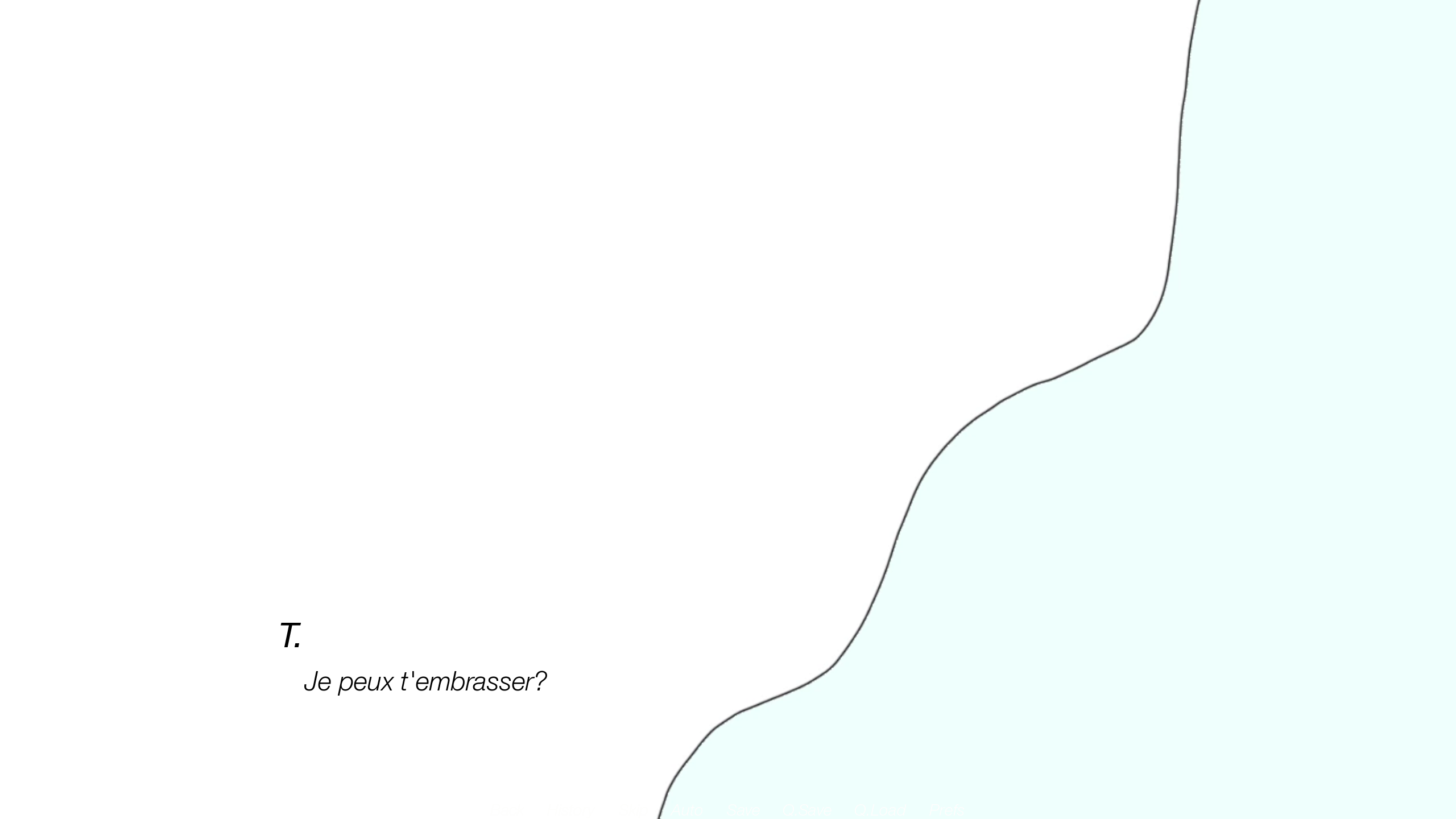 The Dating Game est un visual novel aux tons de game poésie. Il est basé sur mes expériences, mes échecs, et mes déceptions amoureuses, mais comprend une part de fiction pour laisser place à la narration, la poésie, et le dessin. Par l’autofiction, mon intimité devient conviviale, et se transforme en extimité, renversant ce qui peut passer pour une intention autocentrée en un pattern romantique commun et vécu par beaucoup. Le rapport amoureux pourrait être considéré comme l’expérience confondante de l’intimité partagée avec l’altérité.